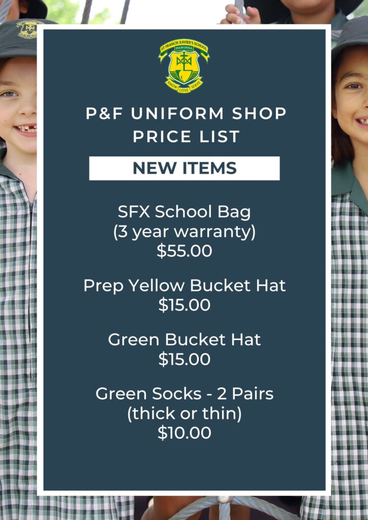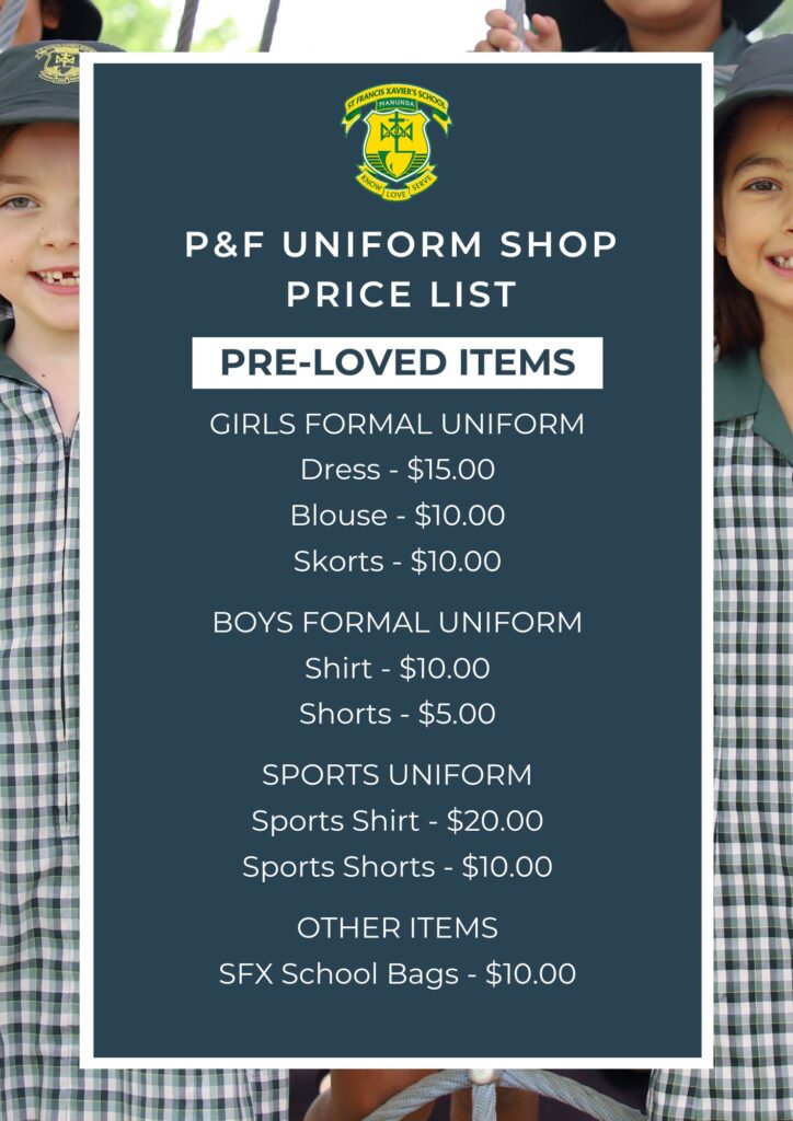 The P&F Uniform Shop is run by volunteers who are always looking for more support. If you are able to donate some of your time to assist please see one of the lovely volunteers in the store, or email our P&F President – sfx.pandf@cnsstu.catholic.edu.au.